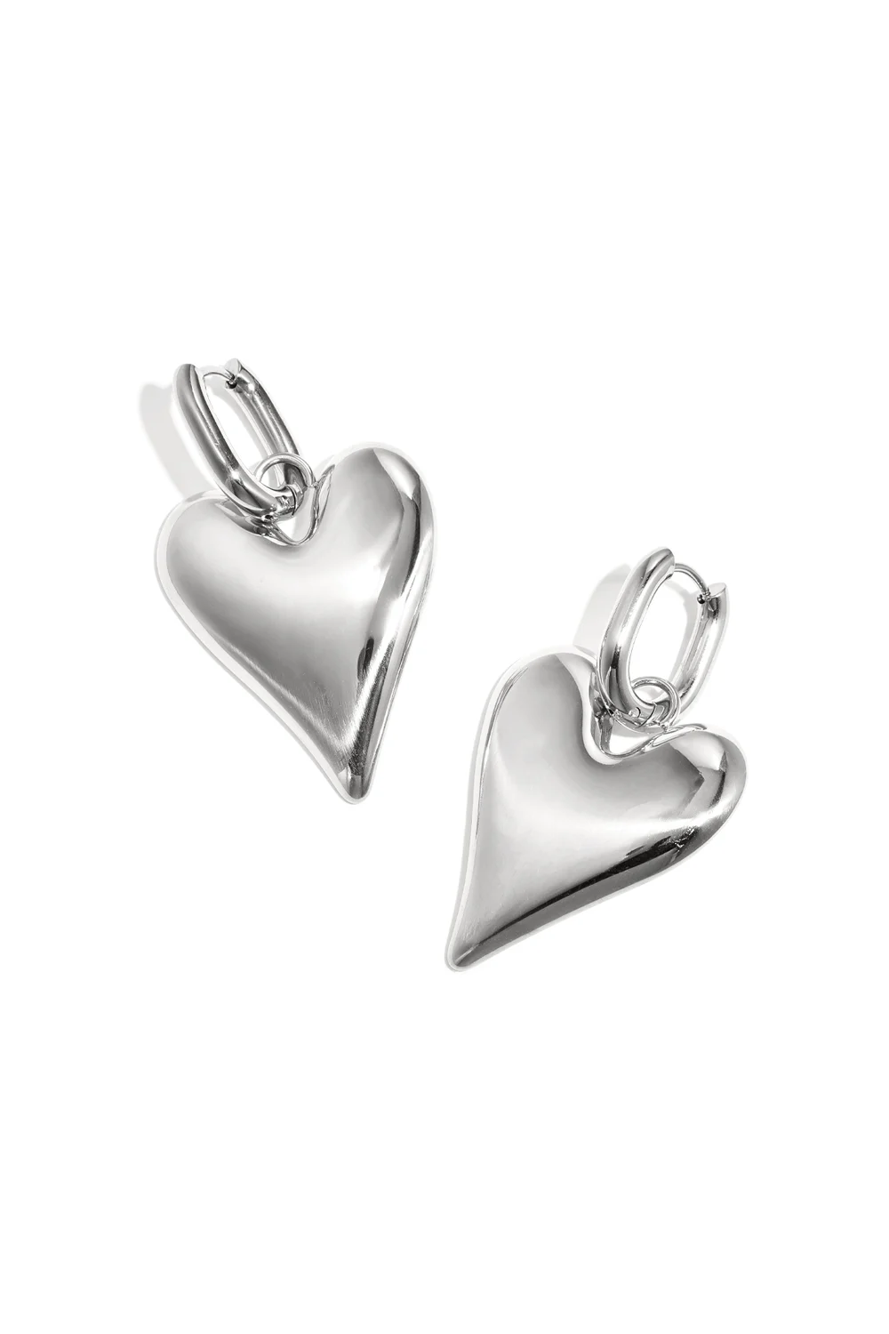 Deze zilverkleurige statement hartoorbellen zijn perfect voor wie houdt van een opvallend maar elegant sieraad. De grotere hartvormige hangers geven de oorbellen een speelse, moderne uitstraling, terwijl het roestvrijstalen materiaal ervoor zorgt dat ze licht blijven en comfortabel zitten zelfs bij langdurig dragen.